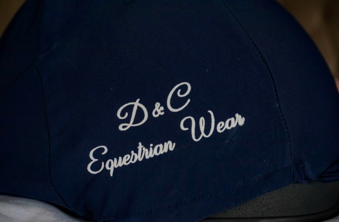 Lycra hat silk with detachable pom pom and D&C logo print.