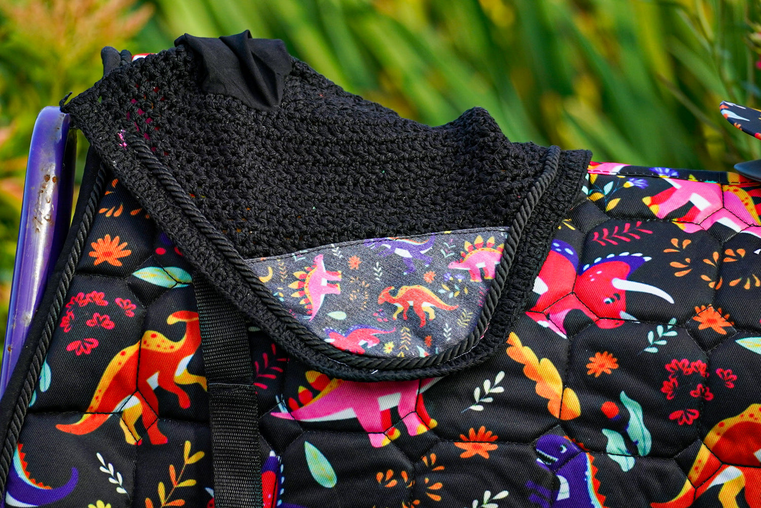 This adorable set includes a GP saddle pad, matching fly veil and a matching hat silk!